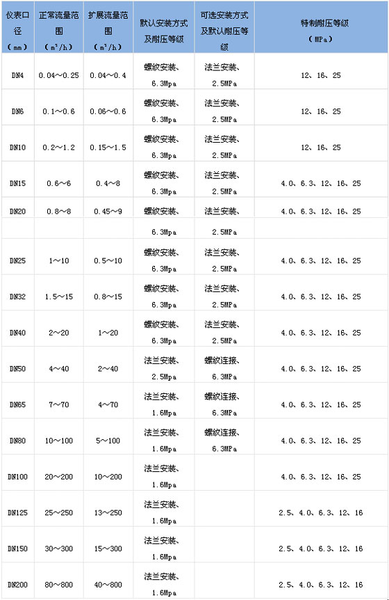 5.范围度款,中大口径可达1:20,小口径为1:10;