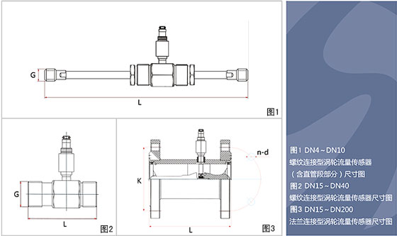 传感器的安装方式根据规格不同,采用螺纹或法兰连接,安装方式见图1、图2、图3,安装尺寸见下表: